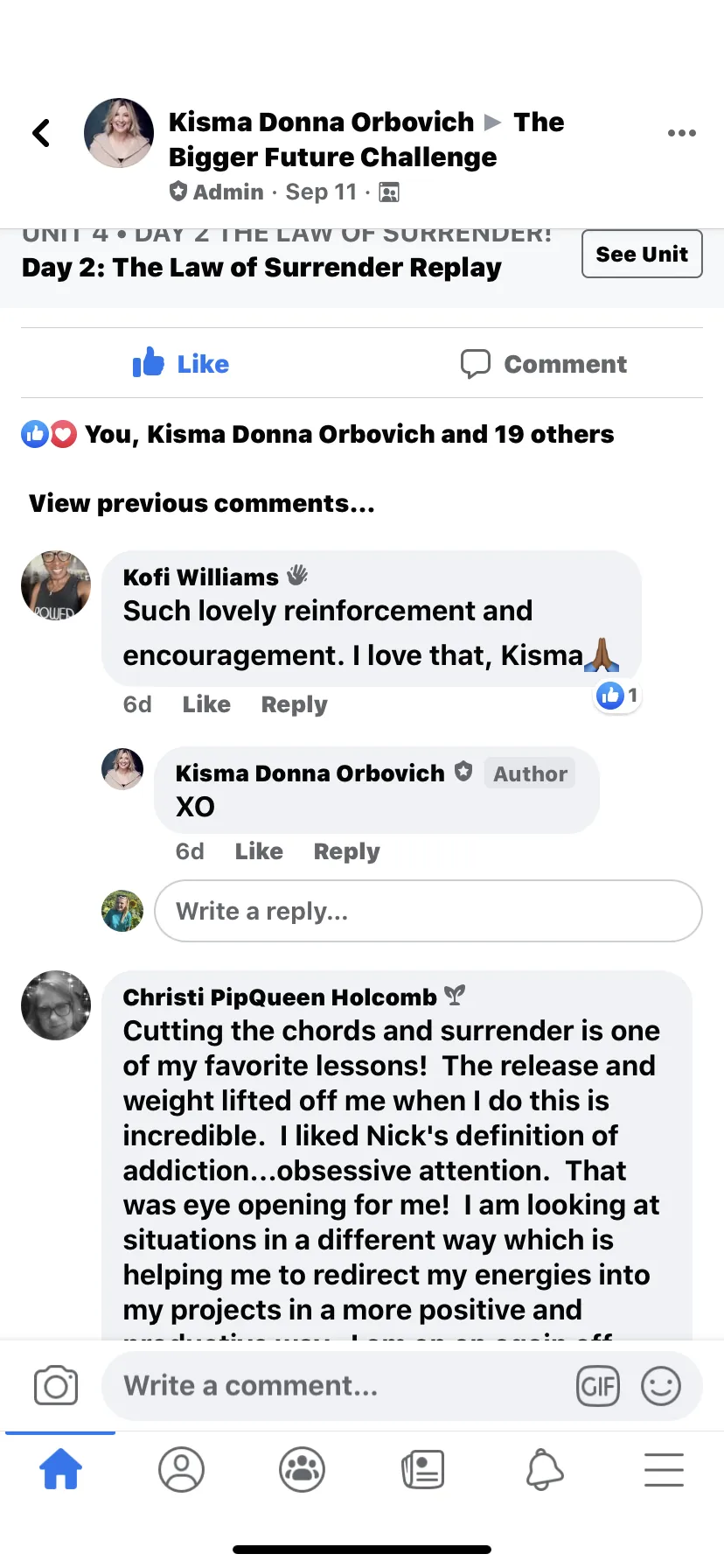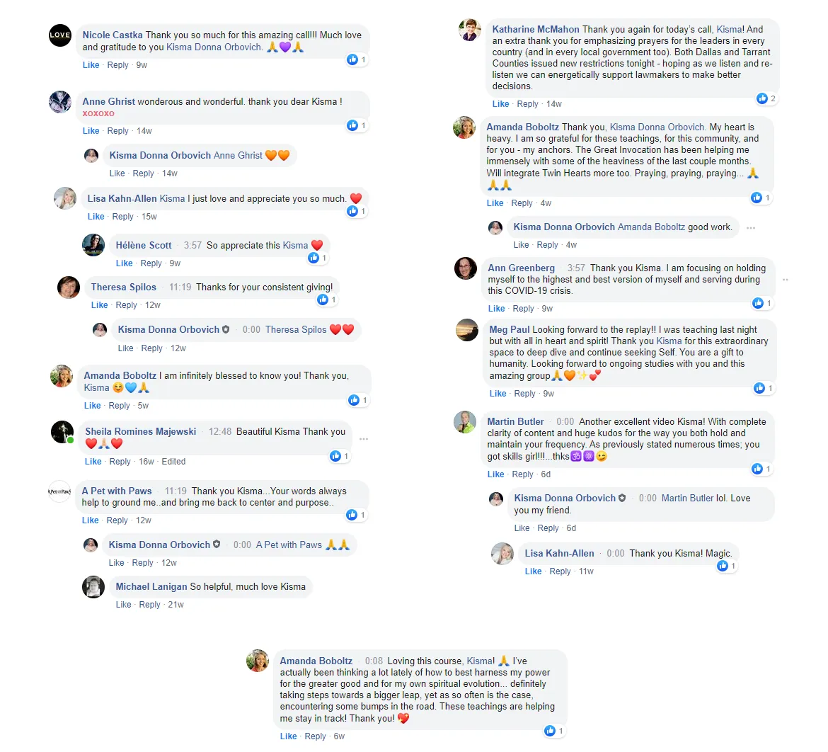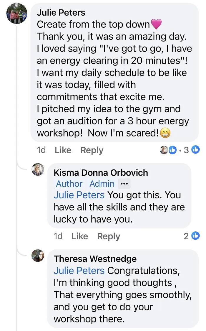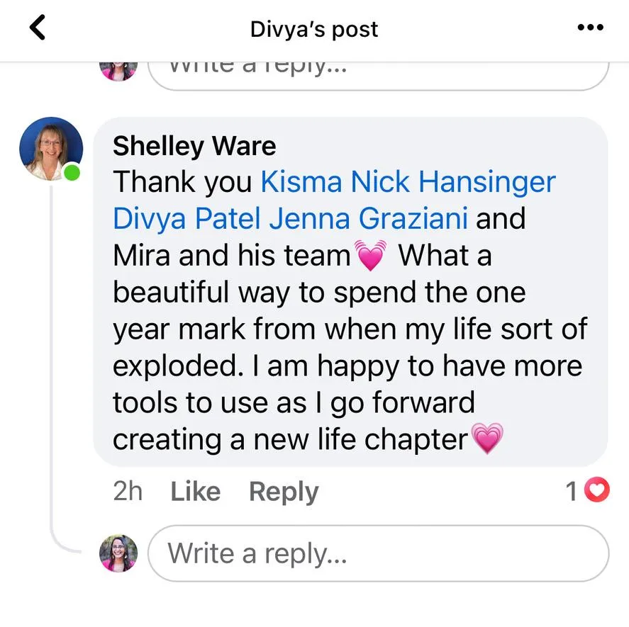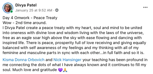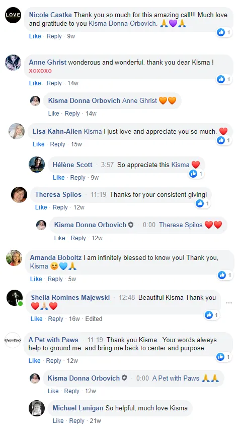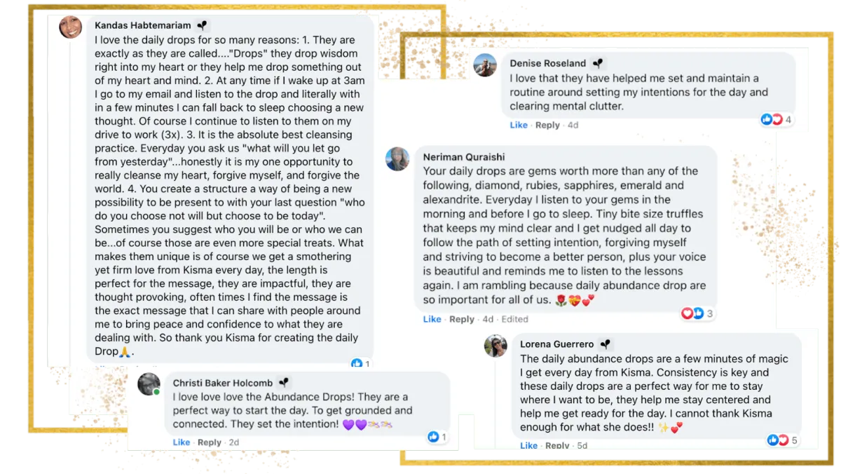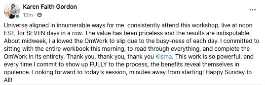 “I find for each challenge I am facing there is some teaching or tool from Kisma that feels like such a blessing. I can see shifts in my prosperity in all areas of my life and I am so grateful. Thank you"