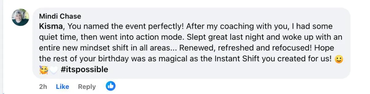 "A breakthrough call with Kisma is like a Soul scrub and magic happens." - Jill, Business Coach